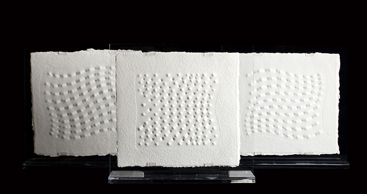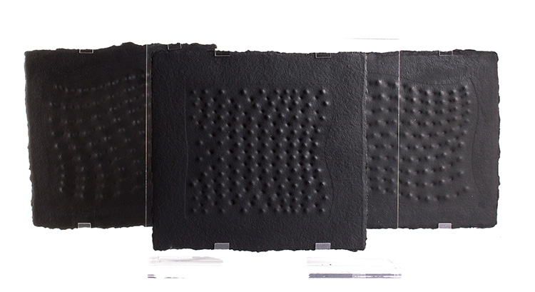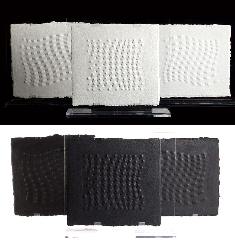 Castelmassa, 1930 - Celleno, 2017 Multipli, Serie Bianca e Serie Nera, 2010 Superfici in rilievo su jesmonite in resina bianca, es. 18/25, multipli bianchi (3) ; es. 3/10, multipli neri (3) ; 28 x 30 cm (34,5 x 35,5 x 10,2 con supporto in perspex) Serie in resina bianca, 25 esemplari in numeri arabi più 8 prove d’artista in numeri romani.