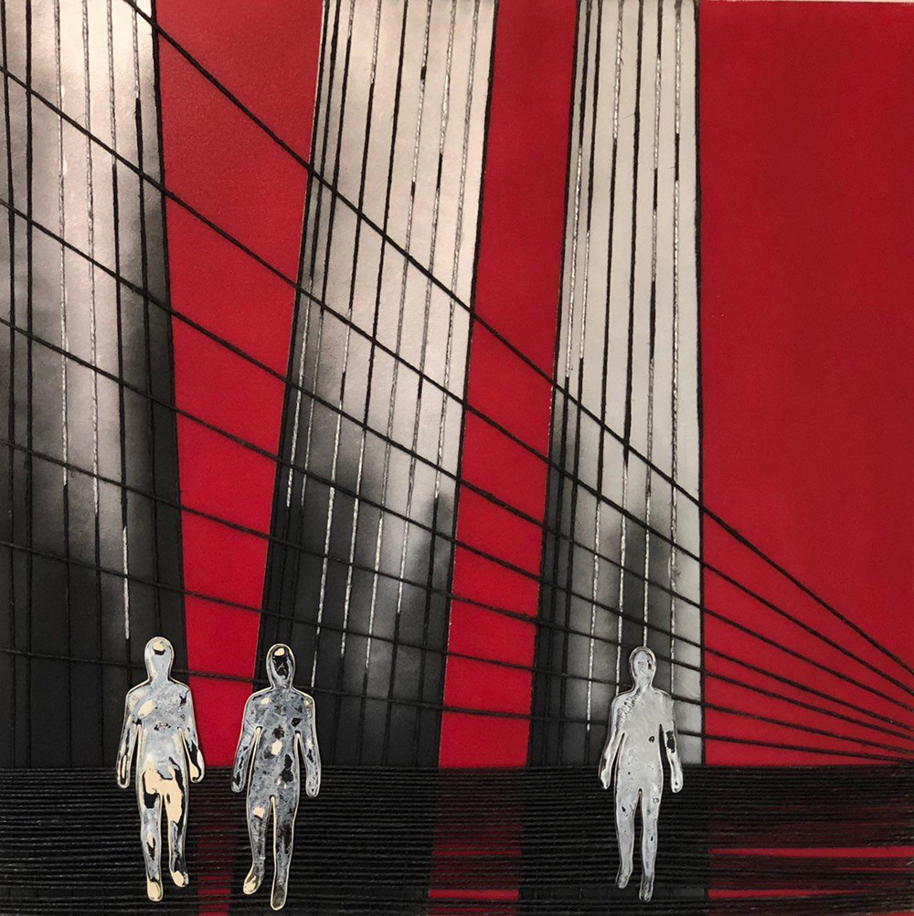 CLASUDIO ASCENZI Rosso Urbano Tecnica mista su tela corde e cartoncino smaltato cm 80x80