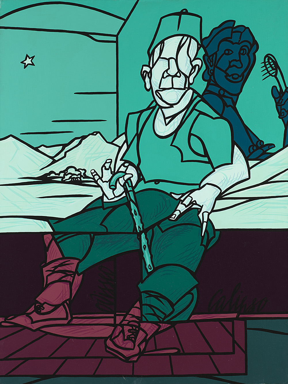 Valerio Adami (Bologna 1935)"Calipso e Odisseo" 2000acrilico su telacm...