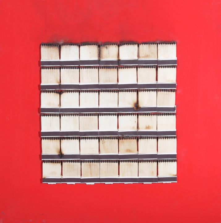 "Senza titolo" 2010 Fiammiferi bruciati su tavola cm. H: 50.00 L: 50.00 Firma ed anno al retro. Archivio delle opere di B. Aubertin nr. 1000108123.