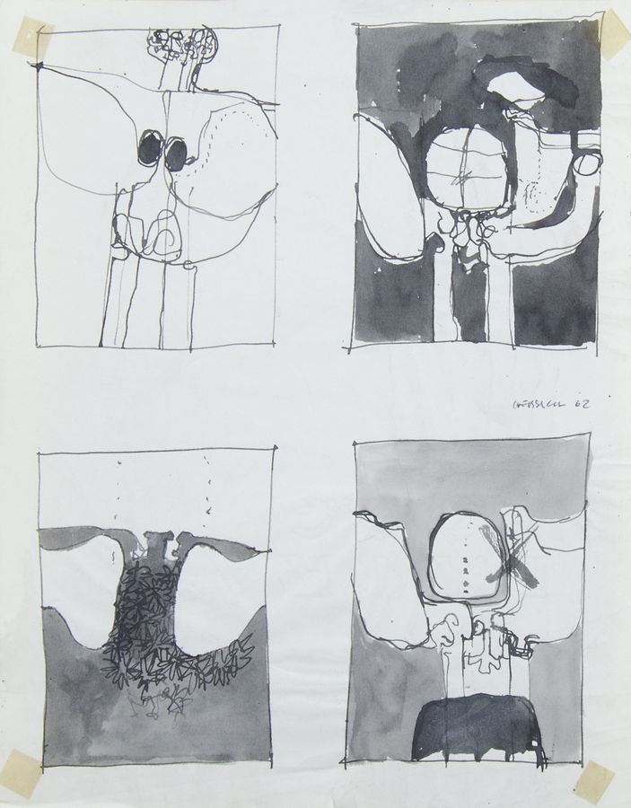 Bruno Chersicla Trieste 1937-2015 Cartella contenente vari disegni e bozzetti su carta. Misure diverse.