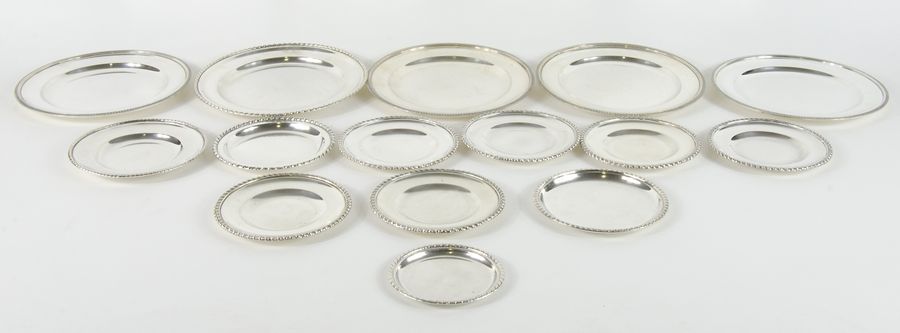 Lotto 35 | Lotto di 15 piattini vari in argento. Gr. 1680.