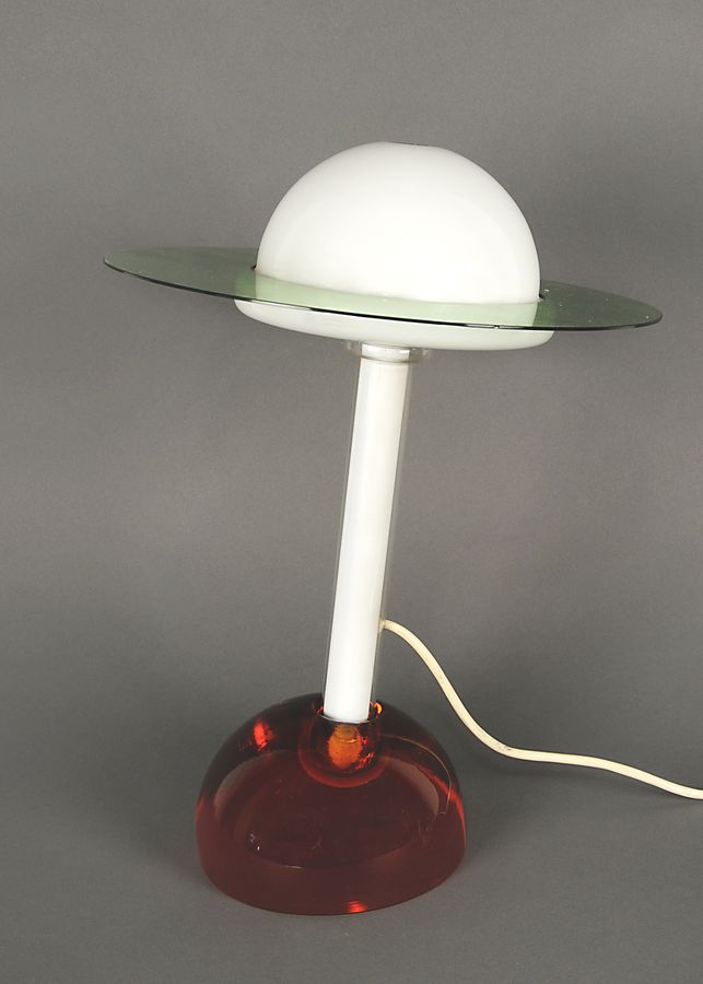 Fontana Arte: lampada da tavolo in vetro modello Plutone. Disegno di D. Puppa 1981. H. cm. 45.