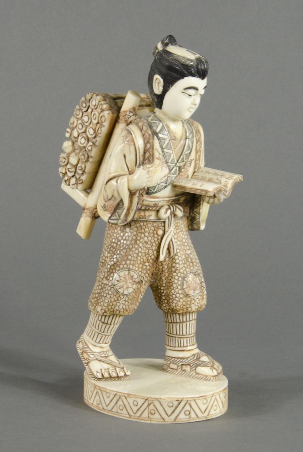 Scultura in avorio finemente inciso raffigurante personaggio orientale. H....