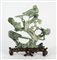 Scultura in giada scolpita raffigurante albero con uccelli, base in legno. H. tot cm. 27.