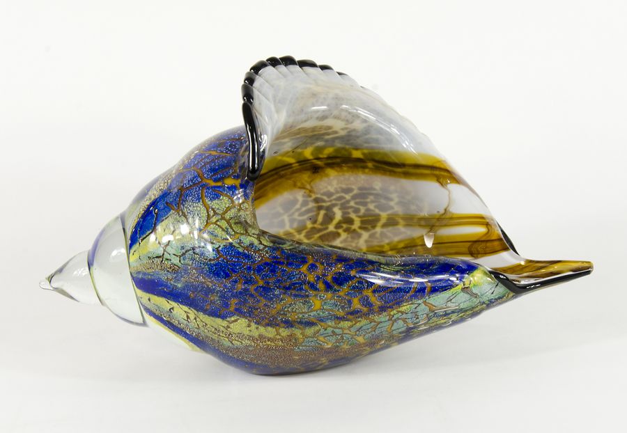 Grande conchiglia in vetro a più colori. Lung. cm. 38.