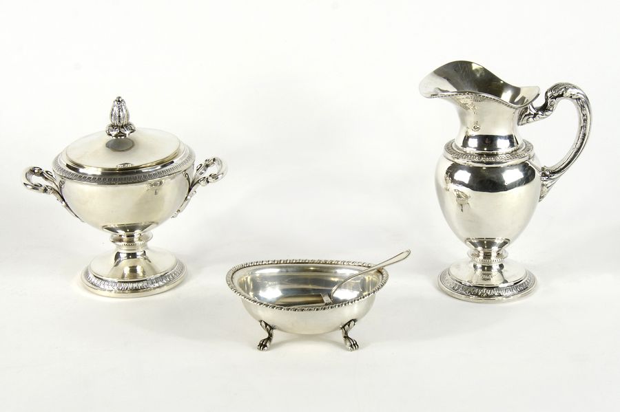 Lotto in argento composto da brocchetta, formaggera e zuccheriera. Gr. tot 690.
