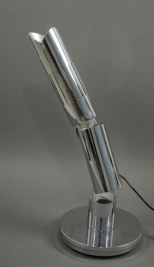 Francesconi: lampada da tavolo cromata modello Cobra. Disegno di G. D'Ali.