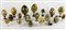 Lotto composto da 19 uova decorate e dipinte, con piedistalli. Misure diverse.