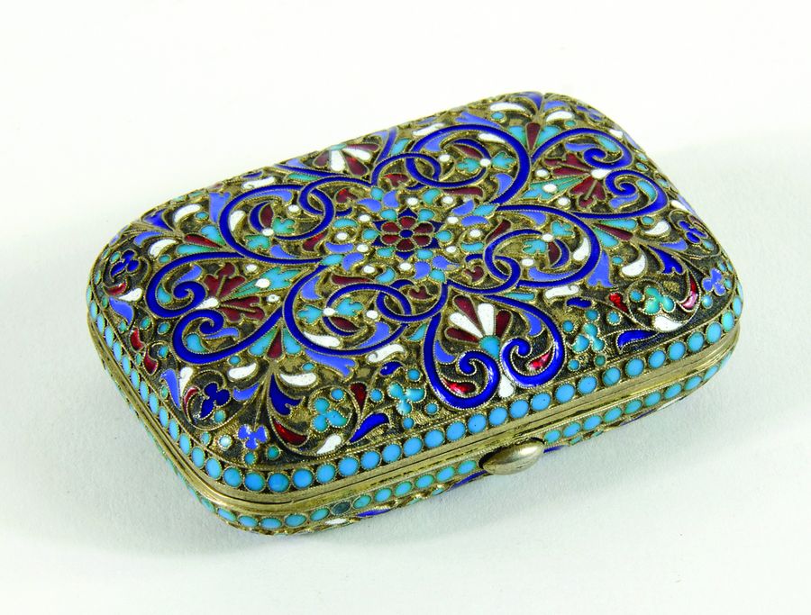 Piccola scatoletta decorata a smalti policromi con interno in velluto. cm....