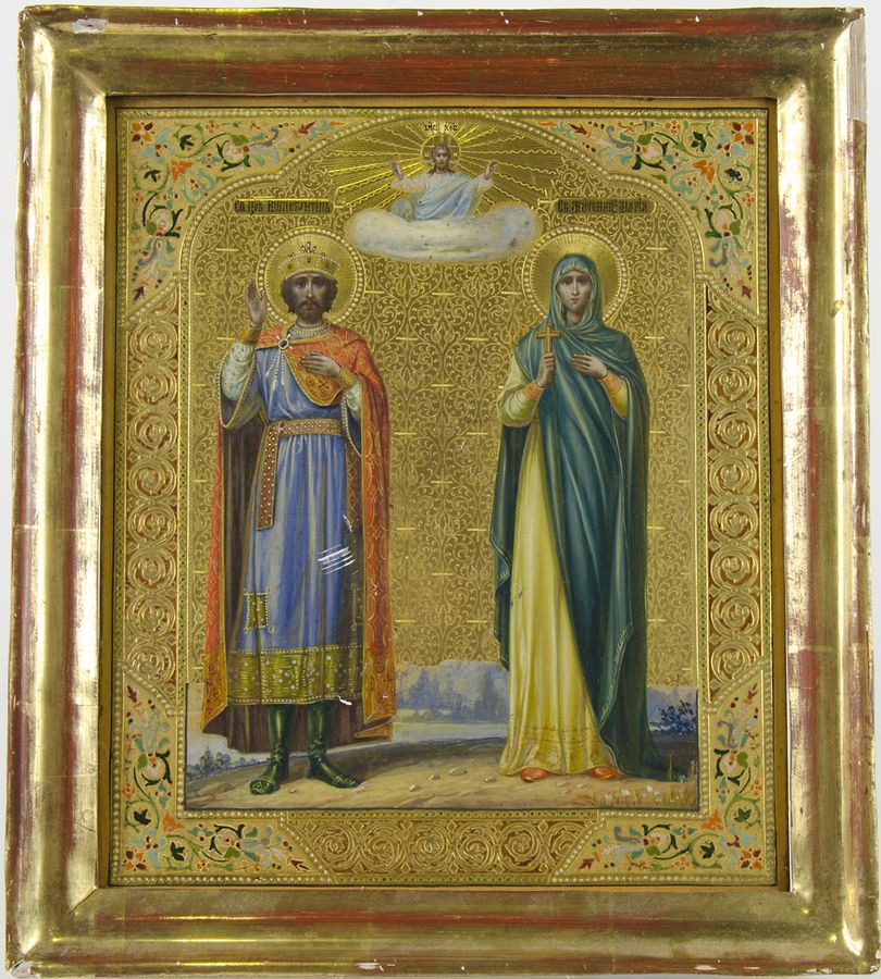 Icona dipinta su tavola raffigurante Santi. cm. 31x26.