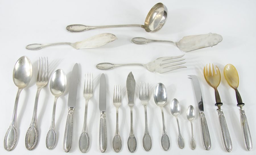 Grande servizio di posate in argento composto da 203 pezzi. Punzoni Selvazza...