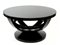 Grande tavolo basso in legno nero con piano in vetro fumè. H. cm. 57, diam. cm. 110.