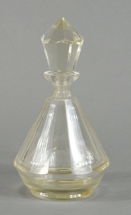 Wienere Verkstatte Bottiglia in cristallo a forma di obelisco con tappo. H. cm. 25. Marchiata.