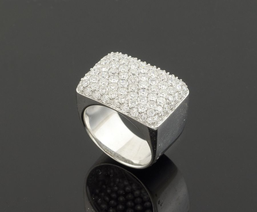 Anello a fascia in oro bianco con pavè di diamanti taglio brillante per ca ct 3,50