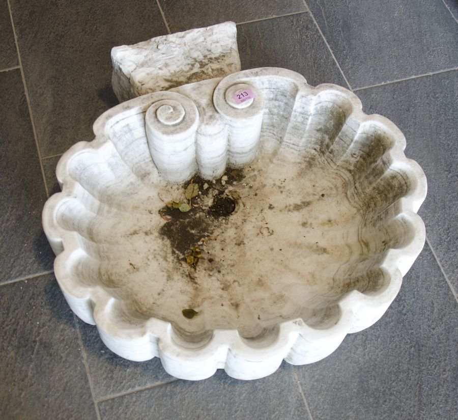 Grande acquasantiera in pietra a coste verticali. cm.64x65x18