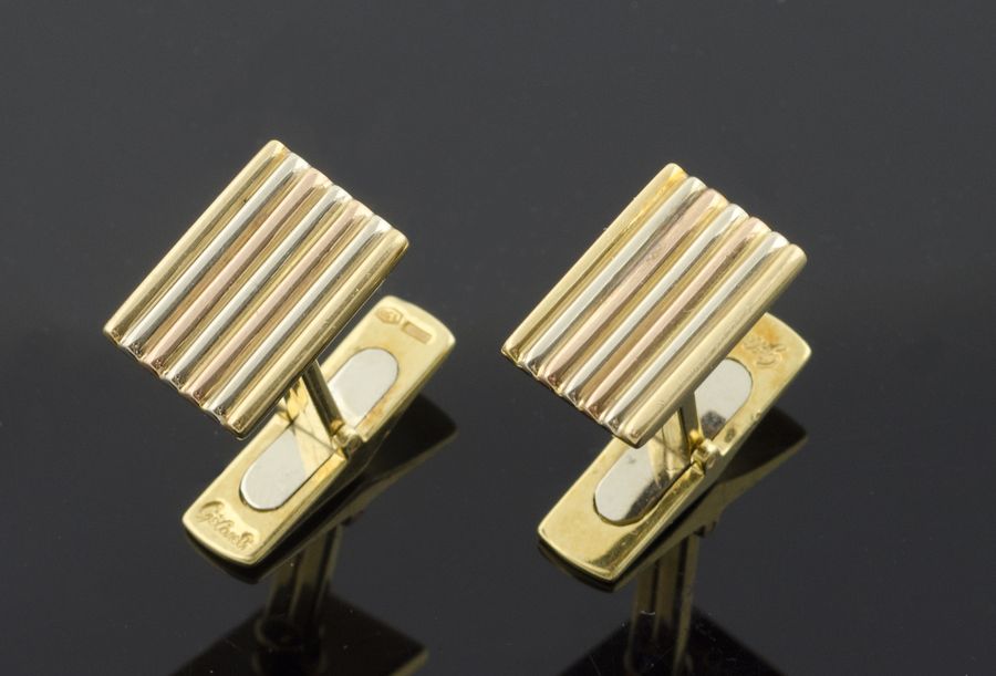Paio di gemelli in oro giallo a scanalature. Gr. 14,4