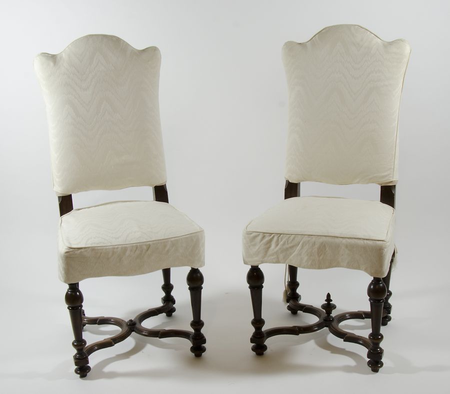 Lotto 250 | Lotto di 6 sedie in legno con alto schienale, gambe unite da crociera.