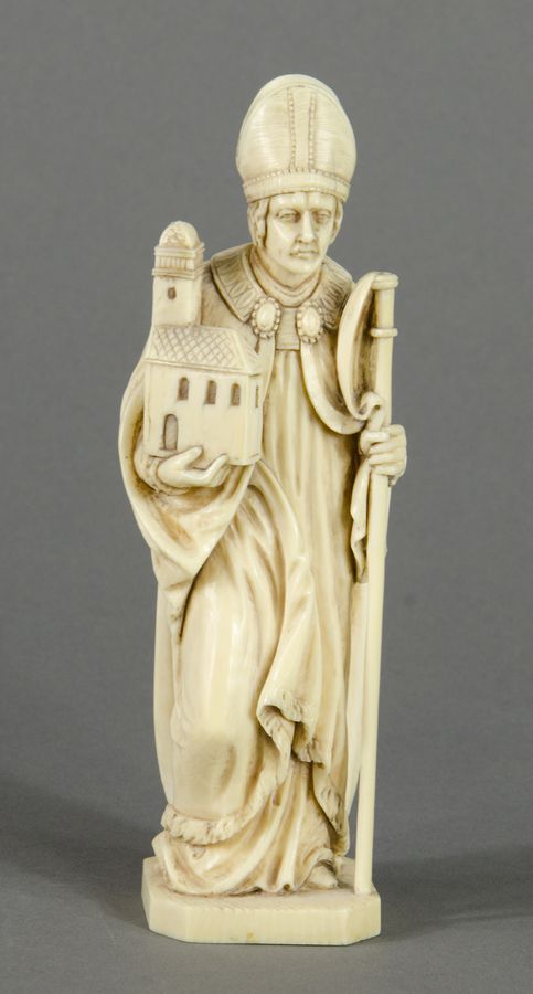Scultura in avorio finemente scolpita raffigurante Vescovo. Europa, XIX...