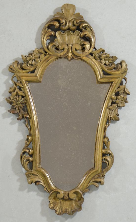 Lotto 279 | Specchiera in legno dorato finemente scolpita. cm. 76x46.