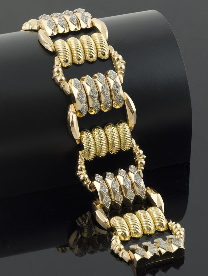 Bracciale a larga fascia in oro giallo e brillanti. Gr. 52.