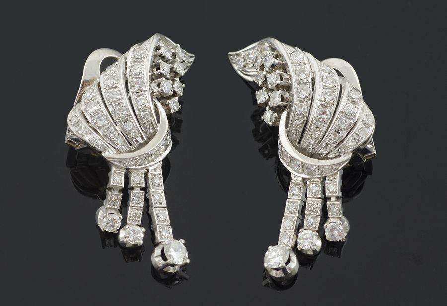 Orecchini in oro bianco composto da fascette e pendenti completamente...