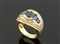 Anello in oro giallo con zaffiri centrali e 2 file di diamanti. gr. tot 14,1.