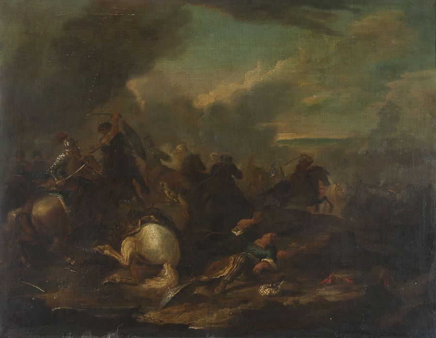 Lotto 311 | Ambito di Jacques Courtois 1621-1676 "Scontro di cavalieri" cm. 70x90 - olio...
