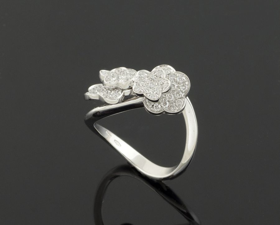 Lotto 314 | Anello in oro bianco con due fiorellini ricoperti da diamanti taglio...
