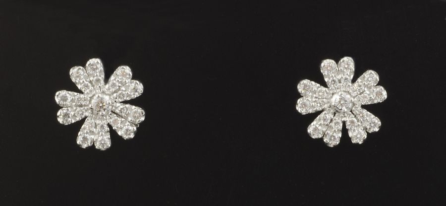 Orecchini in oro bianco a lobo a forma di fiore con diamanti taglio brillante...