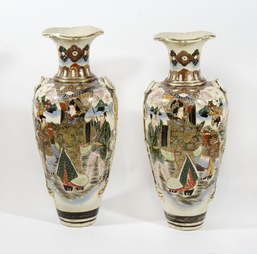 Coppia di grandi vasi decorati a motivi orientali. H. cm. 77. (uno forte restauro).