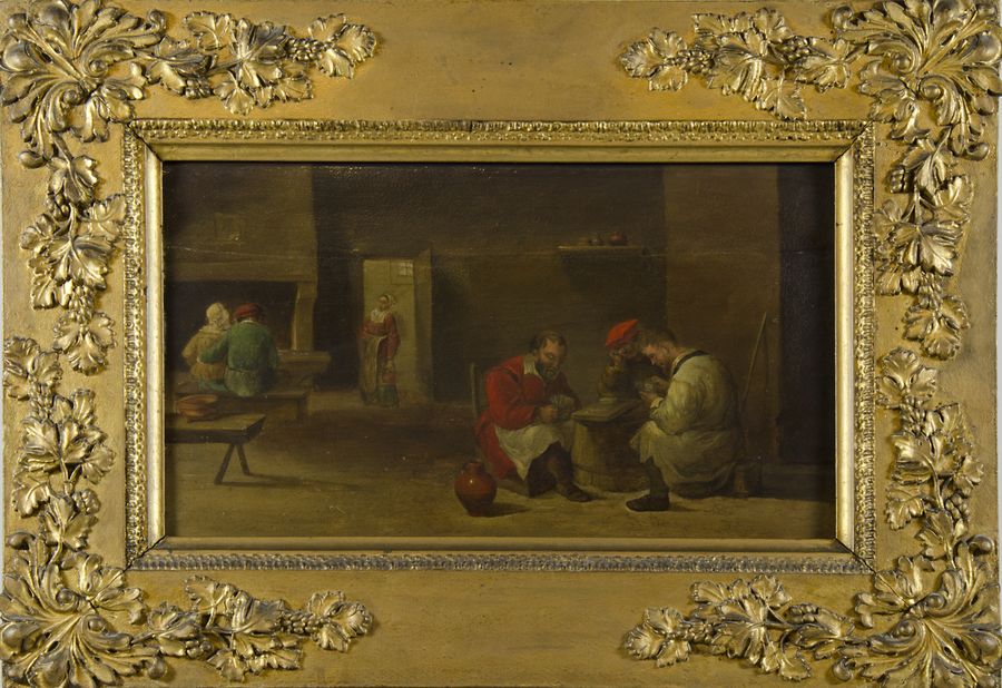 Maestro del XVIII secolo "Interno di taverna" cm. 23x42 - oio su tavola