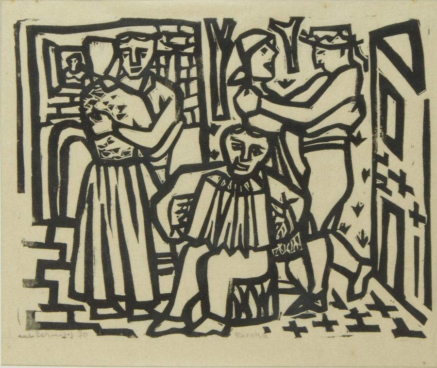 Avgust Cernigoj Trieste 1898-Sesana 1985 "Nozze carsiche" cm. 24x30 - incisione Firmato b. a s. e datato '70.