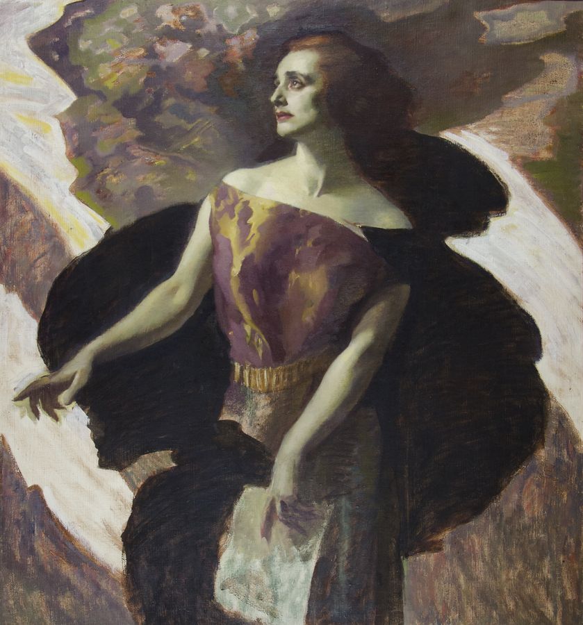 Gino Parin Trieste 1876 Dachau 1944 "Fanni Tedeschi in viola e nero" (anni '26-'28) cm. 140x130 - olio su tela (incompiuto) Pubbl.: catalogo "Gino Parin" a cura Fondazione CRTrieste, pag. 301 fig. 511.