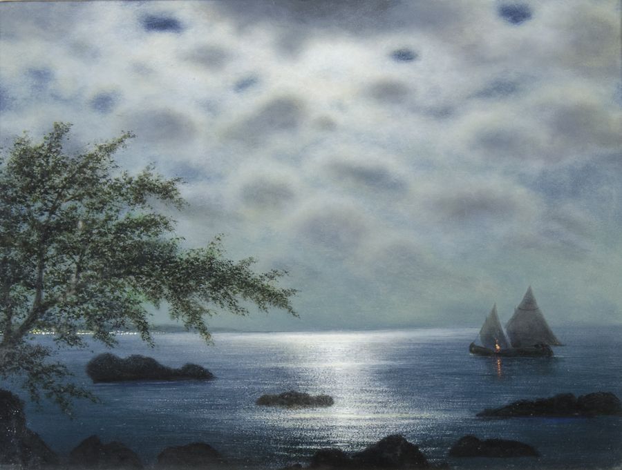Guglielmo Stracca Gradisca 1899-Trieste 1979 "Notturno sul mare" cm. 30x40 - olio su faesite Firmato b. a s.
