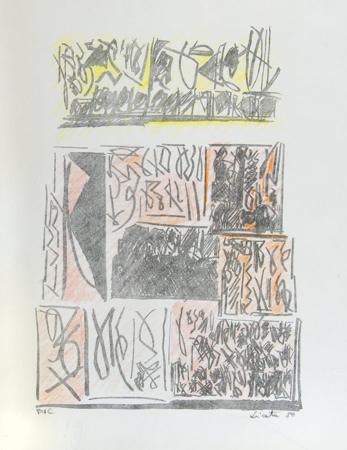 Vincenzo Licata 1929-2014 "Composizione" cm. 58x46 - grafica a colori Firmato b. a d. e datato '80.
