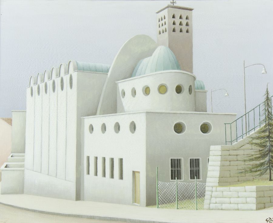 Giovanni Duiz Trieste 1923- "Chiesa di San Pio X" cm. 40x50 - olio su cartone telato Firmato b. a d. e datato '72.