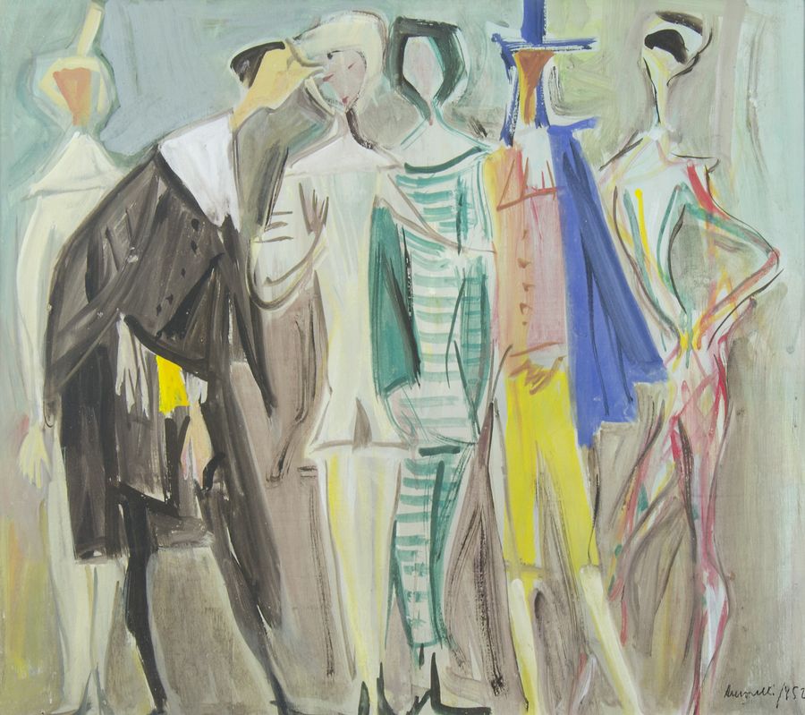 Alfonso Amorelli 1898-1969 "Festa di Gala" cm. 51x60 - tecnica mista su cartone Firmato b. a d. e datato '952. Dipinto anche al retro.