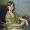 Leandro Oroz y Lacalle 1883-1933 "Crisalida in poltrona" cm. 65x65 - olio su tela Firmato b. a s. Al retro: etichetta Exposicion espanola de bellas artes Venezia 1924: due etichette XIV esposizione internazionale d'arte Venezia 1924; bollo dogana italiana.