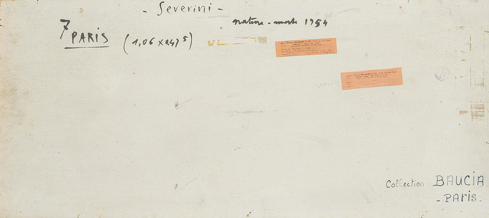 Firmato, titolato e datato al verso: Severini, natura morta 1954