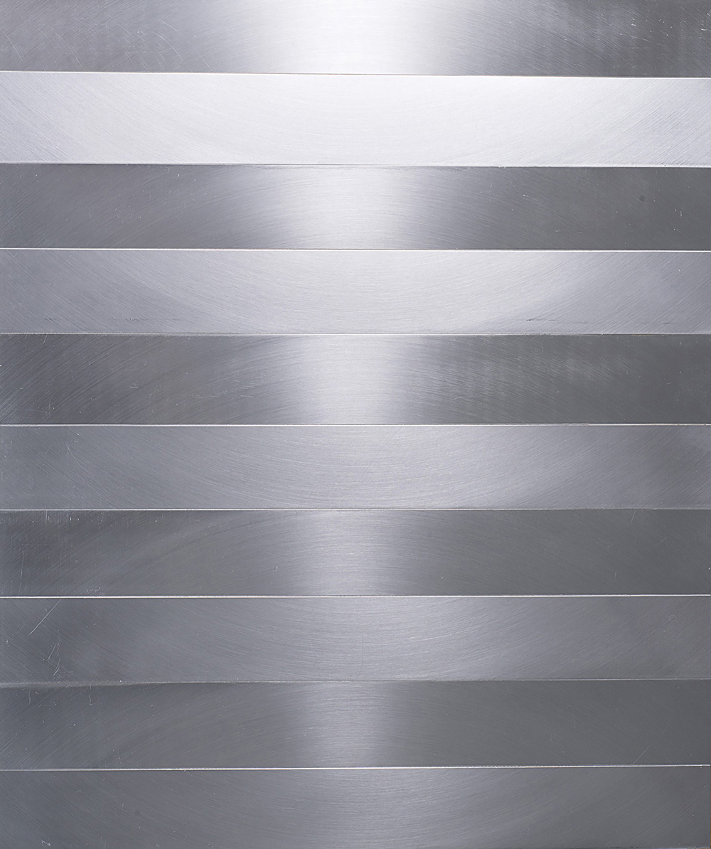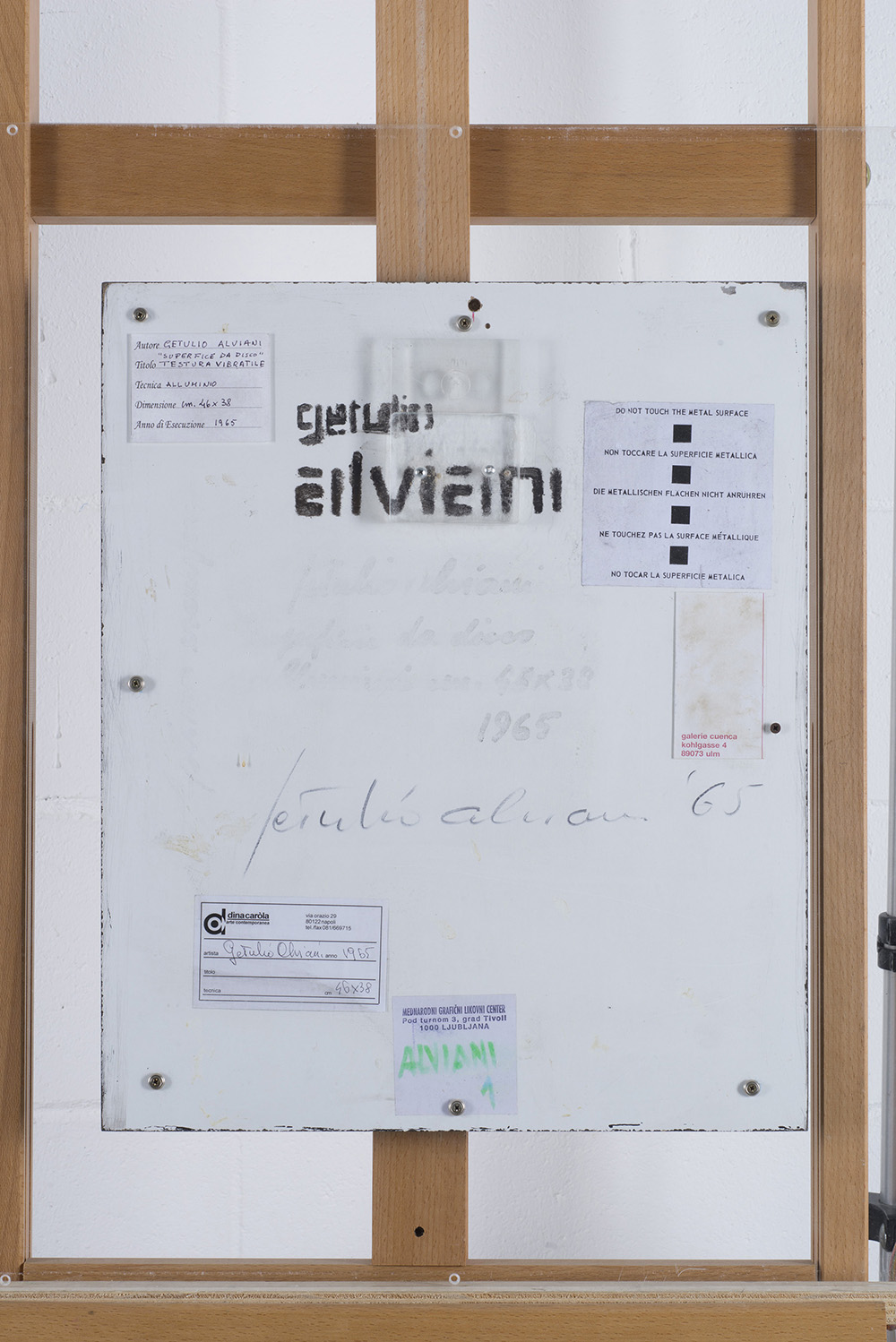 Iscritto al verso: getulio alviani Superficie da disco alluminio cm 46x38 1965