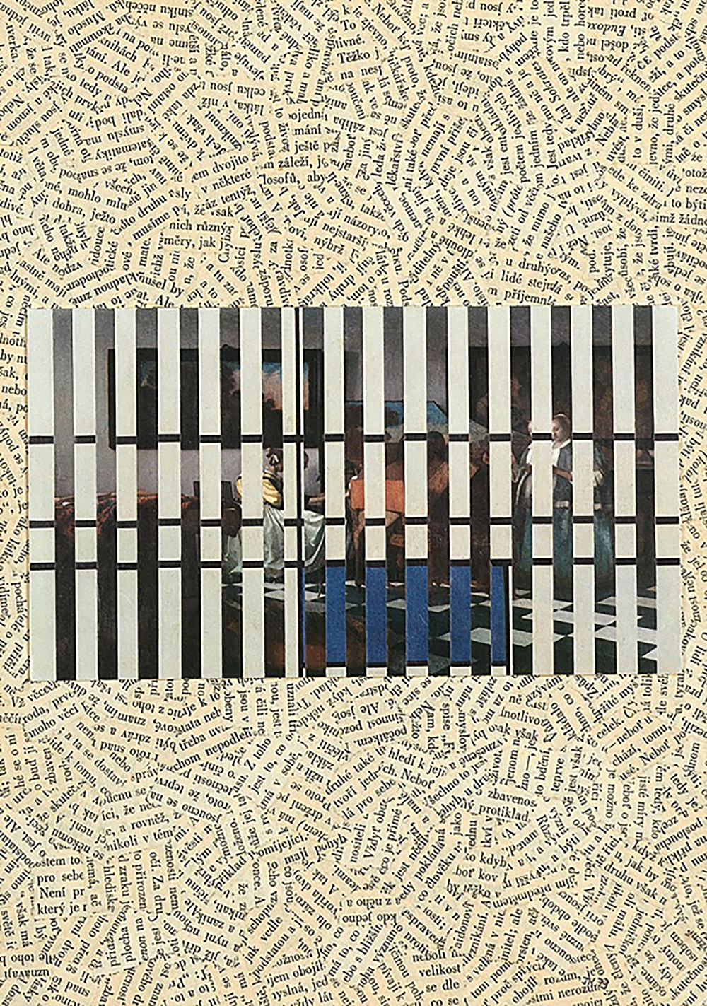 KOLAR JIRI (1914 - 2002) Homage a Vermer, 1976 collage su cartone, cm 29x21...