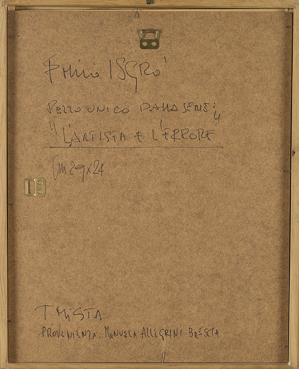 Firmato e titolato al verso: Emilio Isgrò pezzo unico. L'artista e l'amore