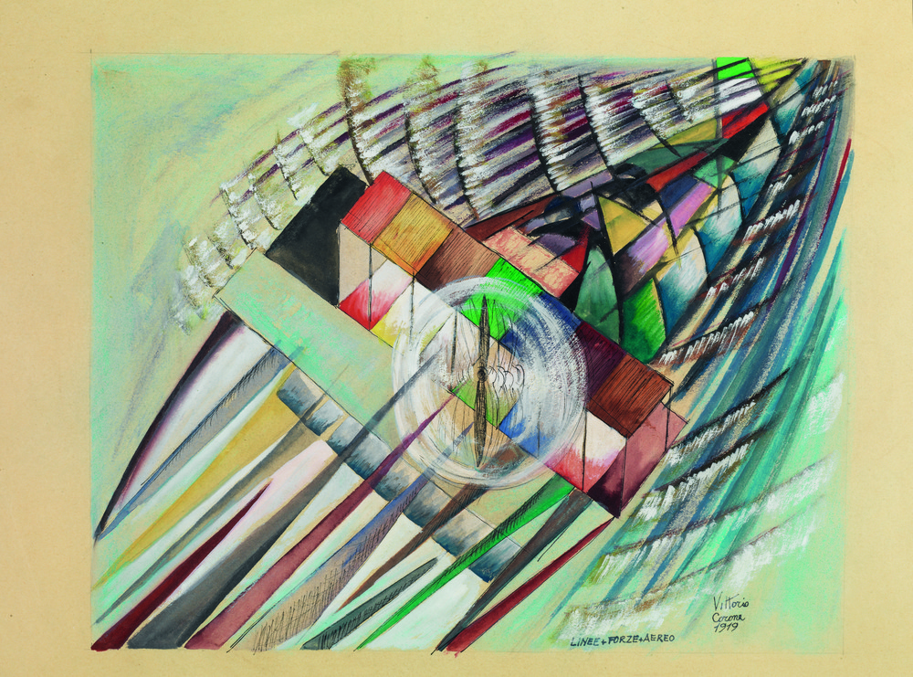 Vittorio Corona LINEE+FORZA+AEREO tempera e china su carta, cm 44x62 firmato, titolato e datato eseguito nel 1919 L’opera e` accompagnata da autentica dell’Archivio Storico Futuristi Siciliani su fotografia Provenienza: Collezione privata, Roma Esposizioni: a cura di Anna Maria Ruta, Svelamenti. Inediti Siciliani dal Divisionismo al Futurismo, Galleria 61, Palermo, 22 febbraio - 14 aprile 2002, ivi ripr. p. 29