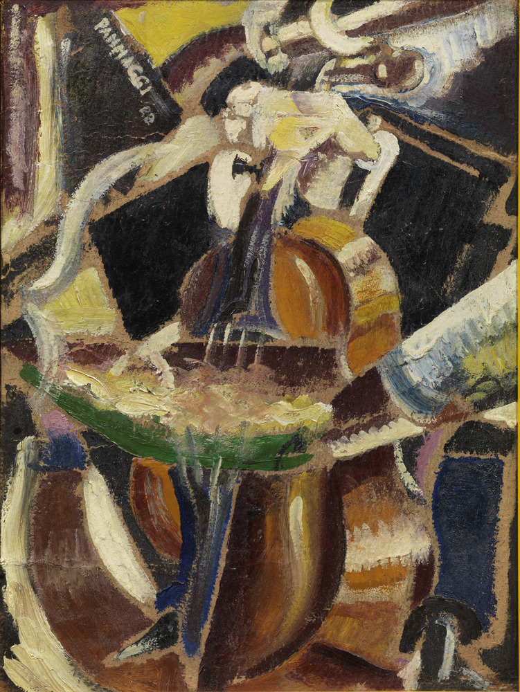 Ivo Pannaggi IL SUONATORE DI VIOLONCELLO olio su cartone, cm 38x27,7 firmato e datato eseguito nel 1922 L’opera e` accompagnata da autentica di Enrico Crispolti su fotografia Provenienza: Collezione Vinicio Paladini Collezione privata, Roma Esposizioni: Ivo Pannaggi, Pinacoteca Comunale, Macerata, aprile-maggio 1977 Pannaggi e l’arte meccanica futurista, a cura di Enrico Crispolti, Macerata, Palazzo Ricci, Pinacoteca Comunale, Palazzo Contini, 22 luglio - 15 ottobre 1995, ivi ripr. p. 77, tav. B/18