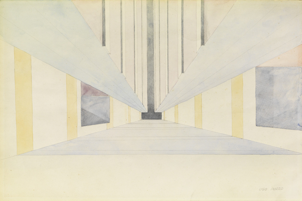 Ugo Pozzo PROSPETTIVA acquerello e matita su carta, cm 25x37 firmato
