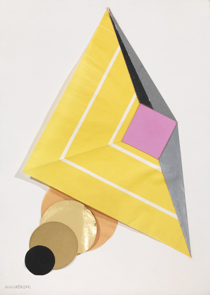 Nicolay Diulgheroff COMPOSIZIONE. LA BUSSOLA IMPAZZITA collage polimaterico...