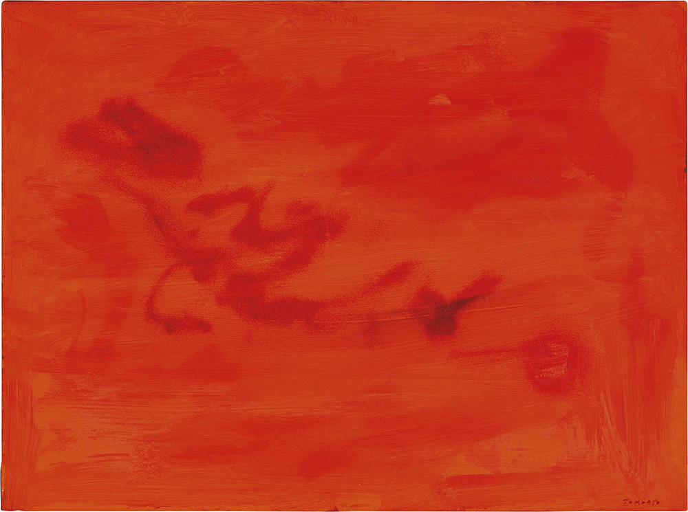 Giulio Turcato Mantova 1912 - Roma 1995 Cangiante rosso Olio e tecnica mista...