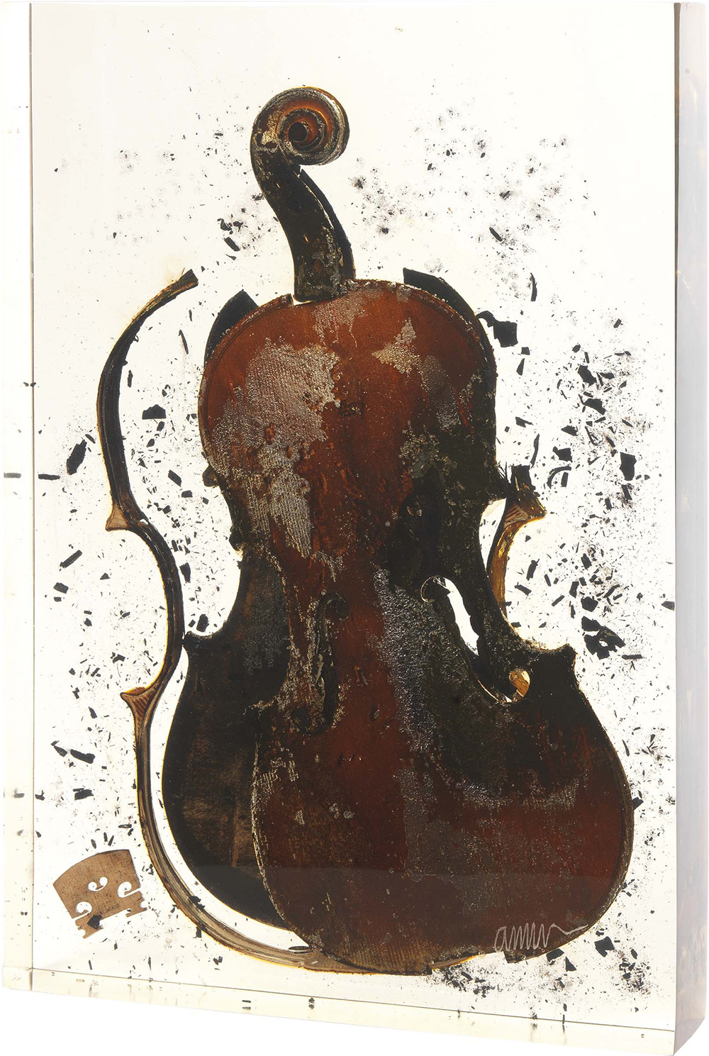 Arman Nizza 1928 - 2005 Senza titolo, (1965) Inclusione di violino bruciato in resina, es. 3/10, cm. 50x35x6,5 Firma in basso a destra: Arman, tiratura al verso: 3/10. Perizia assicurativa di Robert Bellet, Saint-Denis, 17 giugno 1993.