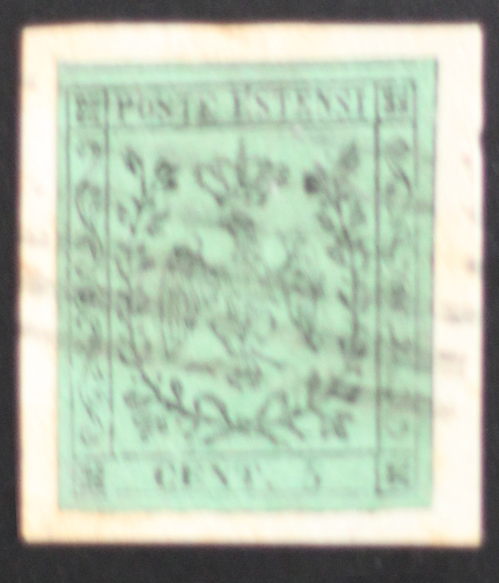 Modena 1852- num. 1 su frammento, firma A. Diena Prezzo di catalogo : 275 €